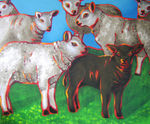 2008Met deze schapen aan de muur is het altijd lente! In de vachten van de schapen is vogelzand verwerkt waardoor ze structuur hebben gekregen.