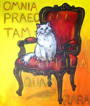 2008De latijnse tekst op het schilderij betekent: 'Alles wat voortreffelijk is, is zowel moeilijk als zeldzaam' (Cicero) Hier geillustreerd door een nuffige raskat op een antieke stoel. Maar is deze tekst niet op velerlei zaken van toepassing?