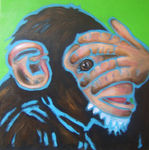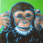 2008Dit doek is onderdeel van het 3-luik 'horen, zien en zwijgen'. De 3 doeken staan leuk naast elkaar maar ook onder elkaar komen ze goed uit op een smalle muur. Prijs is voor complete 3-luik.